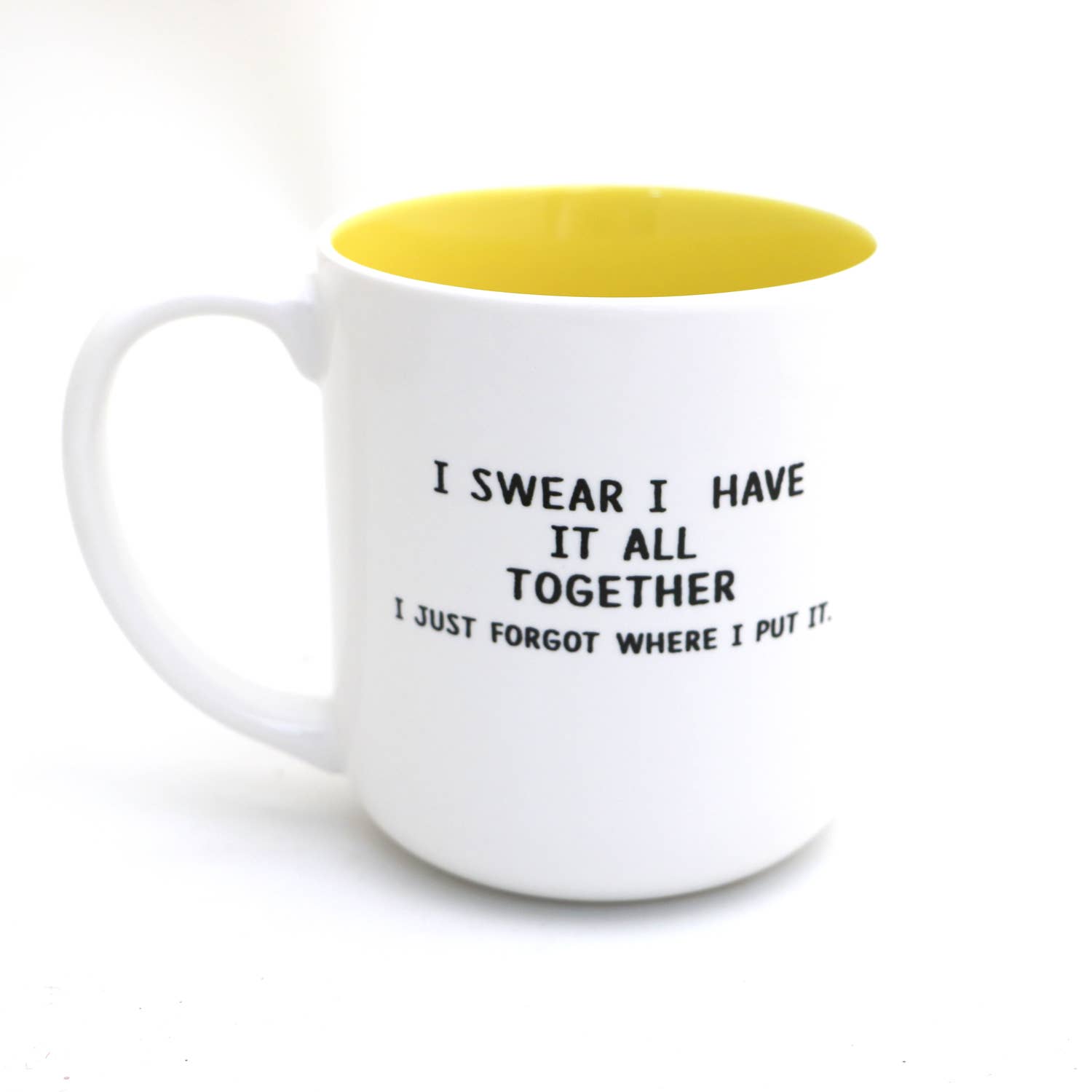 I came. I Saw. I forgot what I was doing. Retraced my steps, got distracted on my way back and have no idea what's going on. Is this my cup? And now I have to pee. Back reads: I swear I have it all together. I just forgot where I put it. Celebrate that getting older is not for sissies with this funny mug. Created in my New Jersey studio from stoneware clay and kiln fired to over 1900 degrees. This mug measures 4 x 4 and holds 16 oz. All glazes are lead free and non toxic. This item may be placed in the dishwasher or microwave- made to be used and enjoyed.